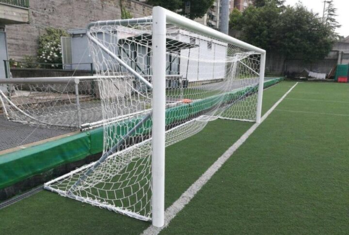 Profesionalni nogometni gol fiksne izvedbe, izrađen od kvalitetnog aluminija s ovalnim profilom 100/120 mm. Prečka je izvedena iz dva dijela, a gol se montira u metalne čahure za sigurno fiksiranje na igralištu. Opremljen je stupovima za natezanje mreže. Certificiran prema normi EN748, što jamči sigurnost i usklađenost s propisima za natjecateljsku upotrebu.